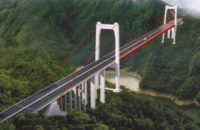 Guizhou Guiyang-Huangguoshu Expressway is 119.957km long, with 74 bridges (32975m) and 15 tunnels (16037m).Yangbaoshan Bridgeis a suspension bridge with a main span of 650m,GanxiBridgeis an open-web continuous rigid frame bridge with a main span of 300m, and WumeiheBridgeis an arch bridge with a main span of 300m. CCCC Second Highway Engineering Co., Ltd. was responsible for construction of 14 sections, including subgrade, bridges, tunnels and pavement engineering for about 84km.